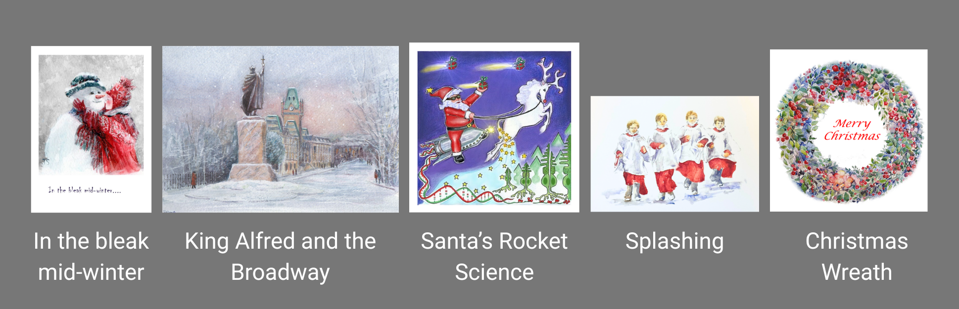Our Gift of Sight Christmas cards are available in packs of 5 cards with envelopes, with a choice of different designs, all thoughtfully created by our talented supporters. £4 per pack of 5 of 3 packs for £10!