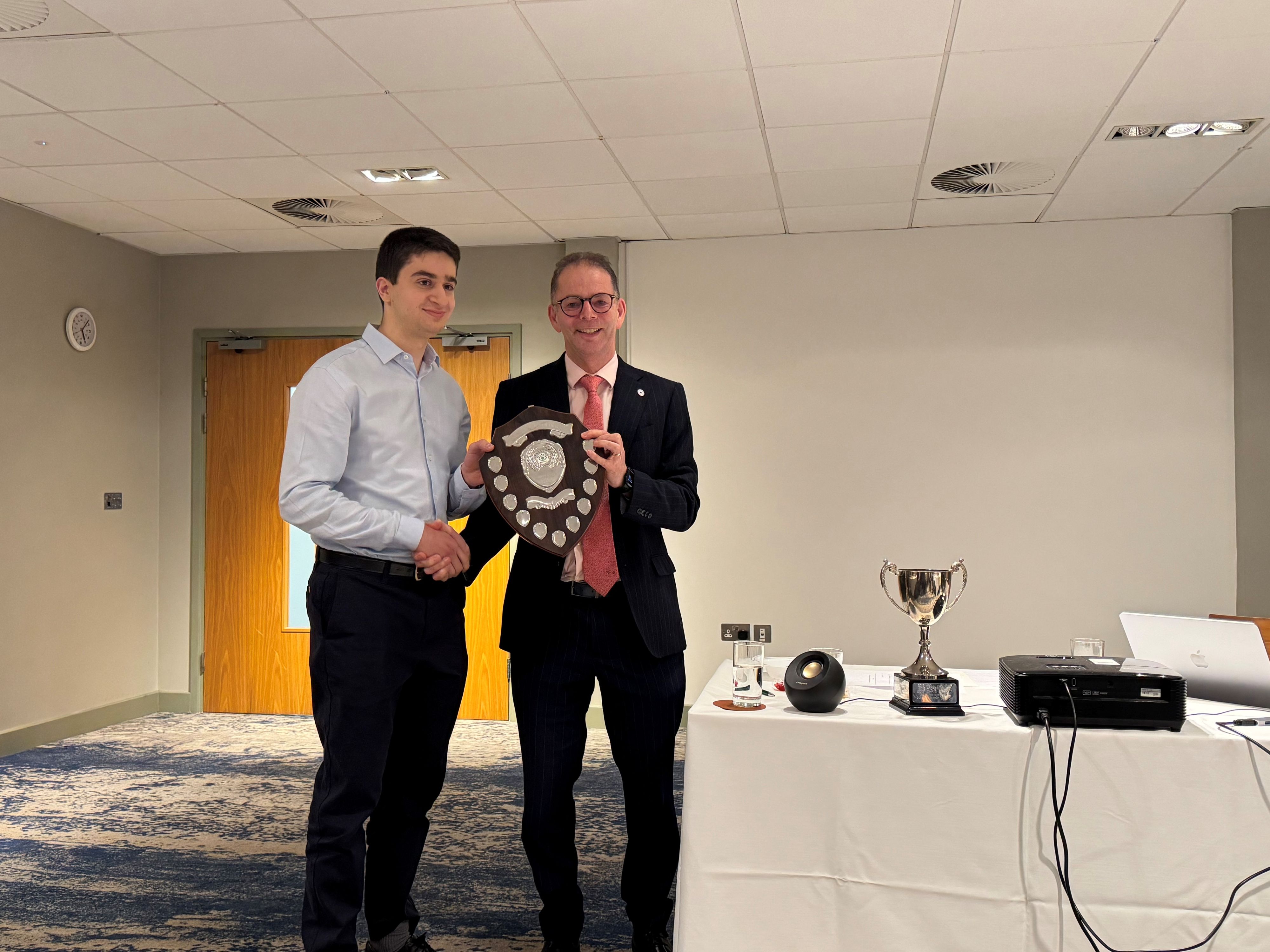 Congratulations to Dr Borna Assarian, winner of this year's Gift of Sight Clinical Award at the Wessex Regional Ophthalmology Audit Day. UK hospitals are experiencing a significant shortage of corneal eye tissue to save sight for patients. Borna’s presentation focussed on improving "Eye donation potential at a large general hospital in the UK" (Southampton), and he impressed the judges with his tenacity and passion for driving change in this vital area of ophthalmology. Borna was presented with the Gift of Sight Shield by Professor Andrew Lotery, along with funding to support the costs of sharing his work at a prestigious eye research conference. Currently, Borna combines clinical work and research studies as part of the corneal team at University Hospital Southampton, under the supervision of Professor Parwez Hossain.